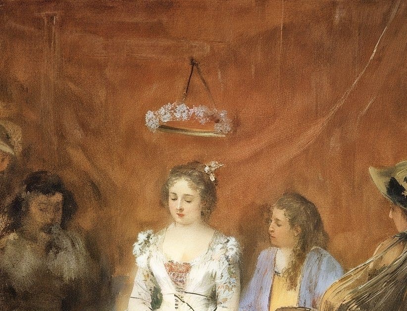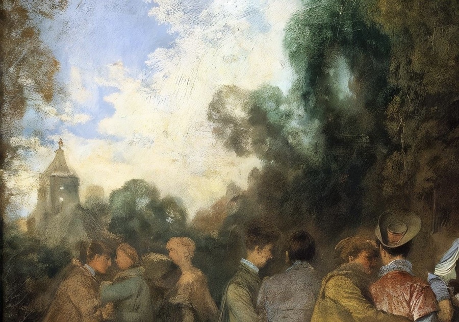 Фрагменты из картины «Брачный контракт и кантри-танцы». (1711) Антуан Ватто