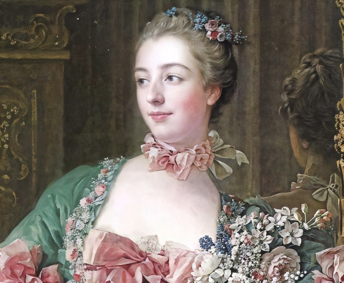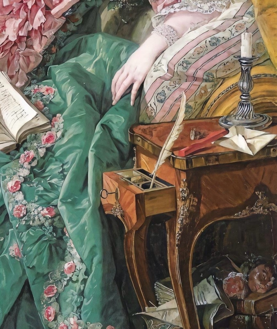 Фрагменты из картины «Портрет Мадам де Помпадур». (1756) Франсуа Буше