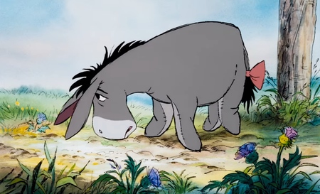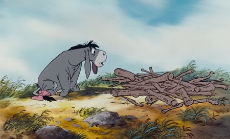 В отличие от других героев мультфильма, у Ушастика нет собственного дома. Попытки построить его не увенчались успехом — хлипкую конструкцию из палок снес Винни-Пух, гонимый сильным ветром вперед. Несмотря на отсутствие собственного жилища, ослик помогает найти новое место для Филина вместо старого, затопленного при наводнении. Это раскрывает его как верного и надежного друга, способного прийти на помощь в трудной ситуации, несмотря на свои проблемы.
