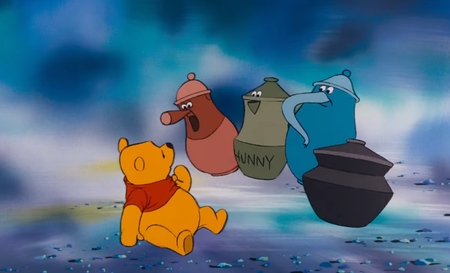 Любимый горшок Винни-Пуха, в свою очередь, обретает ноги, обзаводится парой ботинок и начинает ходить. Также отличается способностью громко смеяться при поднятии крышки.