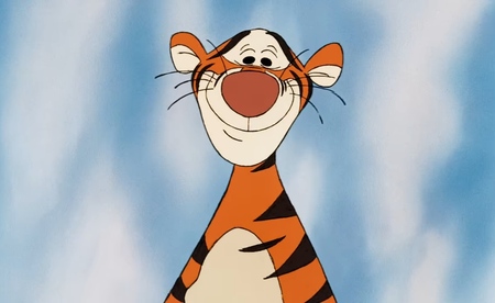 Самый активный герой во всем мультфильме. Каждая из частей тела становится ведущей при определенном движении — трудно выделить одну, как у других героев. Например, при «фирменном» шаге голова ведет за собой тело, а руки, поднимающиеся вверх и вниз, передают заводной настрой Тигрули. Даже уши играют особую роль в пластике: он вытягивает их руками в конце движения или перед ним, будто пытаясь привести неактивный большую часть времени элемент в движение.