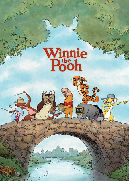 Милн продал права на коммерческое использование образа Винни-Пуха в 1921 году продюссеру Стивену Шлезингеру. Спустя сорок лет, в 1961 году, студия Дисней выкупила их у его вдовы. А уже в 1966 году вышла первая короткометража «Винни-Пух и медовое дерево». Далее, в 1968 и 1974 были выпущены «Винни-Пух и день забот» и «Винни-Пух, а с ним и Тигра!» соответственно. В 1977 году перечисленные выше истории были объединены в полнометражный мультфильм «Приключения Винни-Пуха», ставший предметом анализа визуального исследования.
