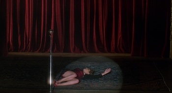 Контраст с предыдущей сценой тотален. Мы попадаем на безликий студийный конвейер, где проходит кастинг для мюзикла — жанра, основанного на условности, ритме и зрелищности, а не на психологической достоверности. Молчаливый взгляд между Адамом и Бетти — это момент внезапного узнавания: режиссер-художник видит в актрисе-художнице родственную душу, идеальный инструмент. Однако этот творческий союз обречен. Его ультиматум лишает режиссера творческой свободы, вынуждая выбрать не гениальную Бетти, а Камиллу Роудс — девушку, представляющую собой чистый продукт, идеальный типаж, лишенный дара.