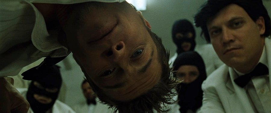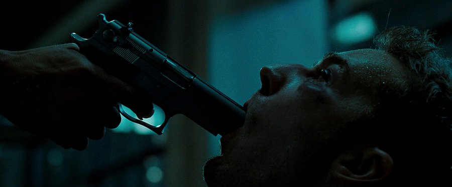 Сцена осознания единства с Тайлером, где визуальные искажения и монтажные склейки достигают пика интенсивности. Выстрел в рот становится метафорой попытки уничтожения собственной Тени, которая оказывается неотъемлемой частью личности. Финчер демонстрирует, что диссоциация — это не просто психическое расстройство, а сложная форма протеста против обесчеловечивающих условий современного капитализма.