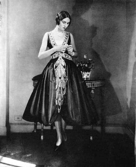 Жанна Ланвен предложила противоположный вариант «женственности»: ее «robe de style» — пышные платья с низкой талией, широкими юбками и утонченным декором — стали геральдикой романтичного образа эпохи, напоминая о бальных традициях прошлого.