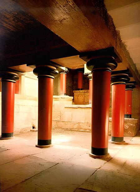 Кносский дворец не имел мощных оборонительных стен. Его «лабиринтообразная» планировка, — это не случайность, а отражение сложной социальной и ритуальной жизни. Центральный двор служил главной коммуникационной осью, вокруг которой группировались многоуровневые помещения. Дворец был открыт для общества, будучи его сакральным и административным сердцем.