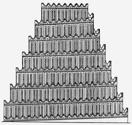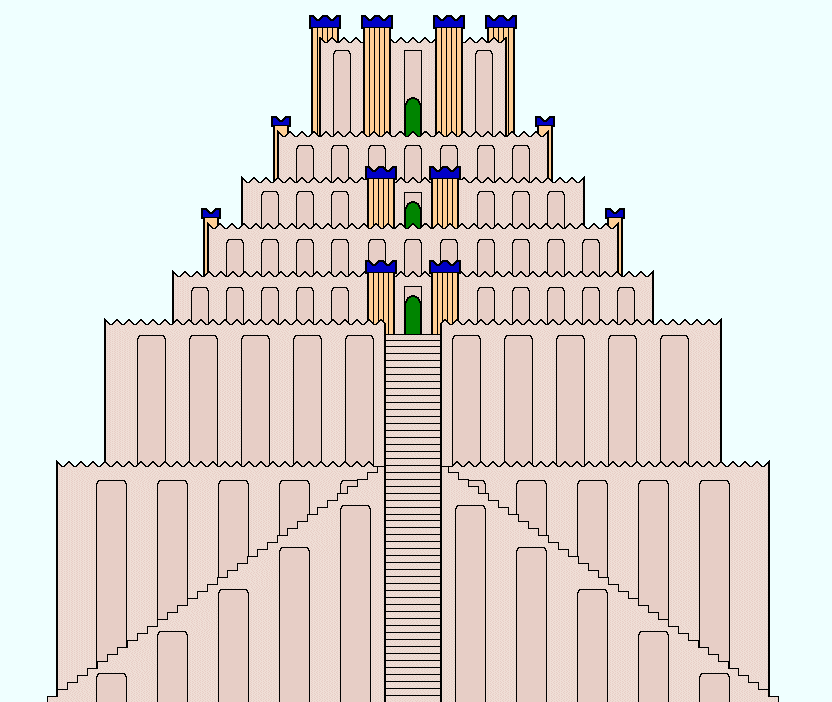 Зиккурат Этеменанки: Каждый из семи ярусов, окрашенных в разные цвета, был посвящен определенному божеству и небесному телу. Верхний храм, облицованный синими глазурованными кирпичами, по свидетельству Геродота, содержал золотые ритуальные предметы и ложе для бога.