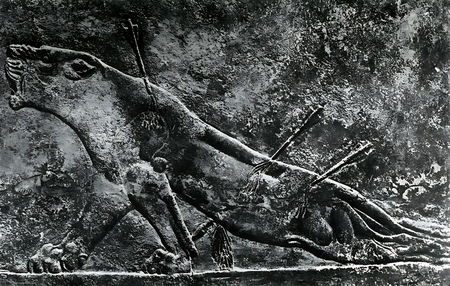 Раненая львица. Рельеф из дворца Ашшурбанипала в Ниневии. Алебастр. Середина 7 в. до н. э. Лондон. Британский музей./Охота Ашшурбанипала. Алебастр. Середина 7 в. до н. э. Лондон. Британский музей.