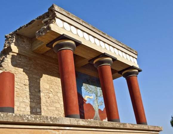 На фото руин и реконструкций Кносского дворца видно, как тонкие и сужающиеся книзу минойские колонны, портики и многоуровневые переходы подчеркивают гибкость и адаптивность архитектуры этой эпохи. Планировка и внутренние пространства дворца говорят о том, что критская архитектура акцентирует внимание на художественности, а не на монументальности.