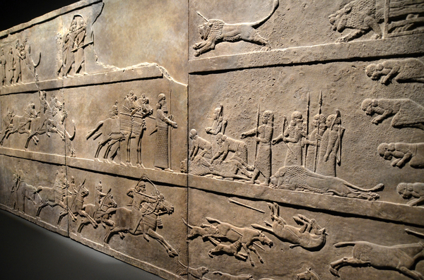 Ассирийский декор в первую очередь представляет собой яркий рассказ о силе и величии: здесь изображены сцены войн, охоты, героические подвиги царей и побеждённые звери, символизирующие триумф цивилизации. Рельефы служат визуальным «языком», который передаёт мощь, контроль и власть. Цвет, особенно на ранних рельефах, играл важную роль, усиливая общее впечатление.