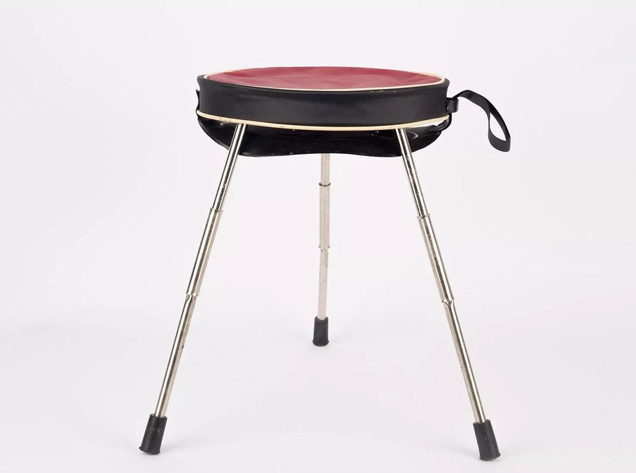 Этот трехногий табурет был легким, прочным и имел крутой дизайн. Он был вдохновлен космическими технологиями: маленький, устойчивый и экономящий место. Весом всего 1,5 кг, он мог выдержать до 130 кг.