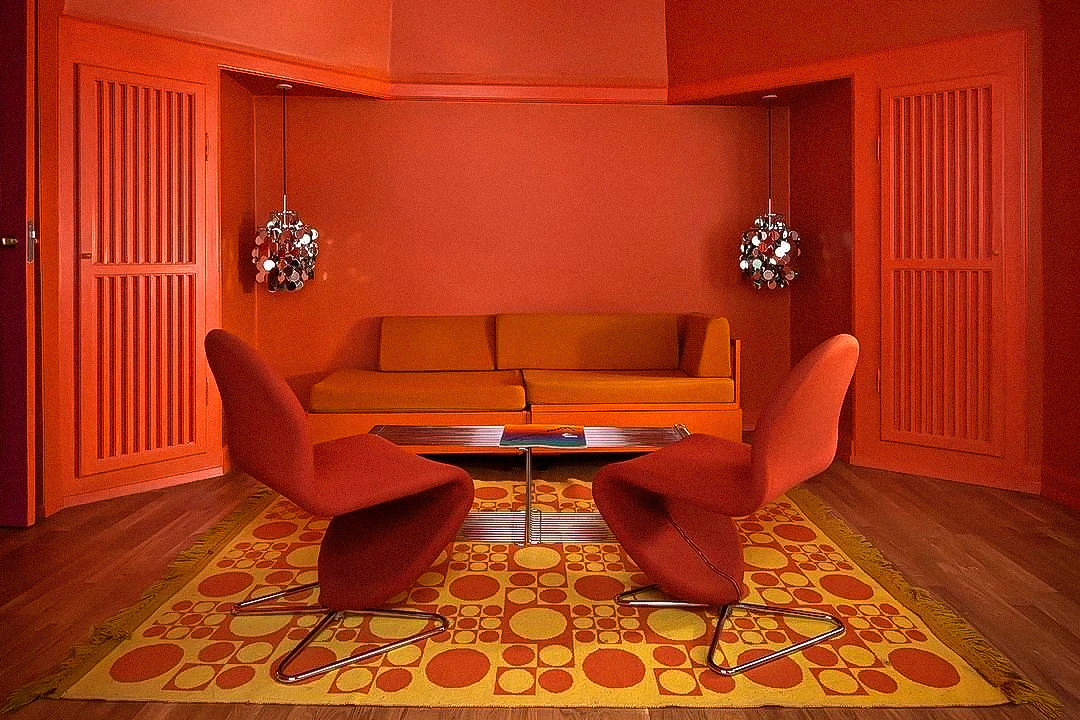 Этот дом словно сошел с экрана фантастического мультфильма; было бы странно увидеть в нем Барбареллу. Эта пластиковая оранжевая коробка, стоящая в поле, противоречит идее модернизма, где все должно быть идеально и продуманно.