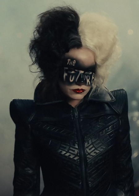 Однако ближе к середине фильма возвышенность и выверенность музыки сходит на нет, когда главная героиня берет себе имя Круэлла и устраивает настоящий бунт против устоявшихся модных стандартов. Каждый ее перфоманс сопровождается дерзким взрывным роком, что приводит в восторг толпу и сводит с ума консервативную Баронессу. Сначала Круэлла появляется перед людьми из мусоровоза в эпатажном наряде, сшитом из вещей, созданных Баронессой, под песню «Should I Stay Or Should I Go» группы The Clash, которая является одним из первопроходцев панк-рока, вдохновленная группой Sex Pistols. И, так как панк-рок является ничем иным, как протестом в чистом виде, эта песня идеально подчеркивает бунтарское настроение, которое создается в этой сцене. Еще одно свое представление Круэлла устраивает под песню Blondie «One Way Or Another», которая звучит динамично, эмоционально и в меру небрежно — ровно такой образ поддерживает Круэлла, появляясь в центре толпы на мотоцикле, одетая в кожанку и с надписью «The future» прямо в центре лица.