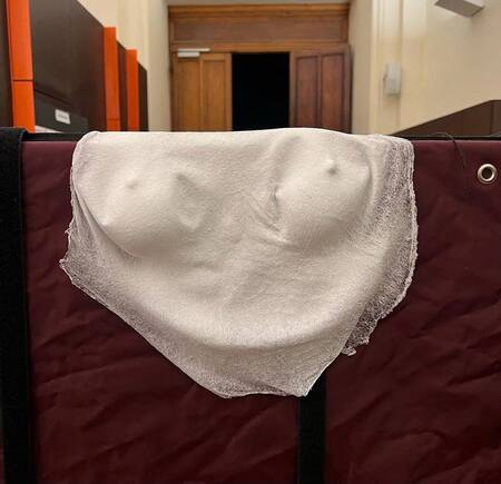 Можно прийтии к выводу — шоу плавно переходит в ритуал, зритель переходит к более глубоким размышлениям, углубляя свое внимание в детали шоу. Момент, который переключил внимание — платье, которое идеально принимало форму тела Беллы Хадид. Сначала все не понимали, чего ожидать от перфоманса, где модель начинают опрыскивать белым материалом. Потом удивление от увиденного, на их глазах появлялось красиво сидящее платье, которое совсем недавно было обычной жидкостью. Именно в этот момент перфоманс становится эффективным и ритуальным, появляется связь со зрителями.