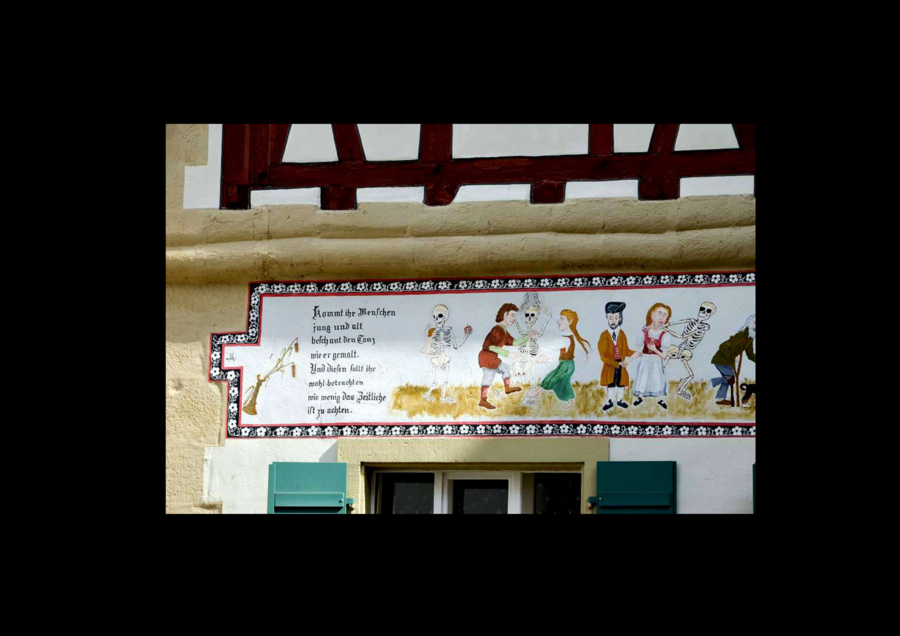 Пляска смерти тут выражена в изображении живого человека с черепами. Из Ванитас тут присутствуют песочные часы, кости и, конечно, сами черепа. Таким образом, реформационные движения оказали существенное воздействие на развитие искусства и его восприятие, а тема «танца смерти» оказалась особенно значимой и влиятельной.