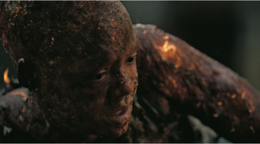 Эффект ожогов, выполненных с помощью грима (1), дополненных CG (2)