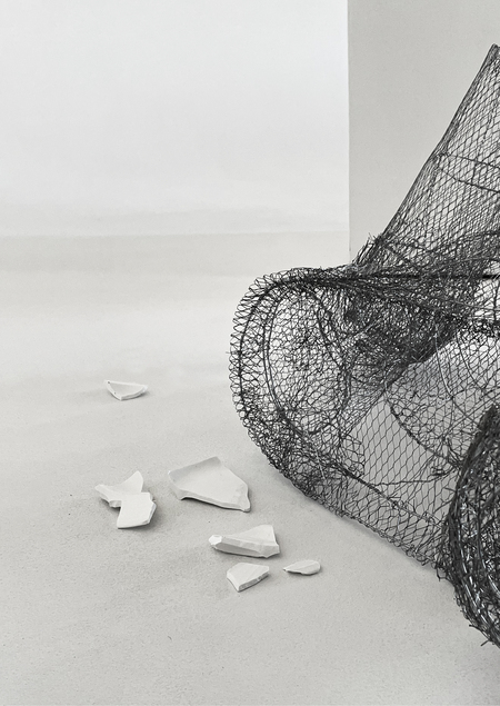 Наши инсталляция и перформанс — это история когда-то влюбленной пары. В центре внимания — женщина, еще любящая. Но ее возлюбленный, как статуя, неживой и бездушный. Героиня терпит разочарование в близком человеке: все, что она когда-то любила в нём, раскололось. Ее жизнь уже не станет прежней, и она сама тоже.
