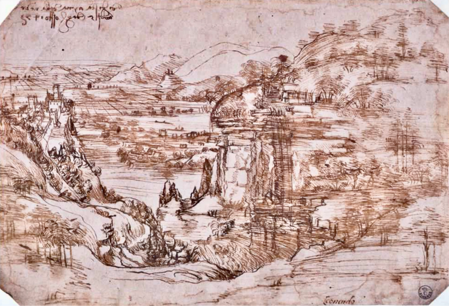 Вид долины Арно / Леонардо да Винчи / 1473 г.