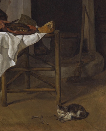 В XVII веке искусство становилось более свободным. Художники стали писать больше картин, посвященных повседневной жизни людей. Так, появилось множество бытовых сцен, где часто мелькал образ наблюдающей или спящей кошки.
