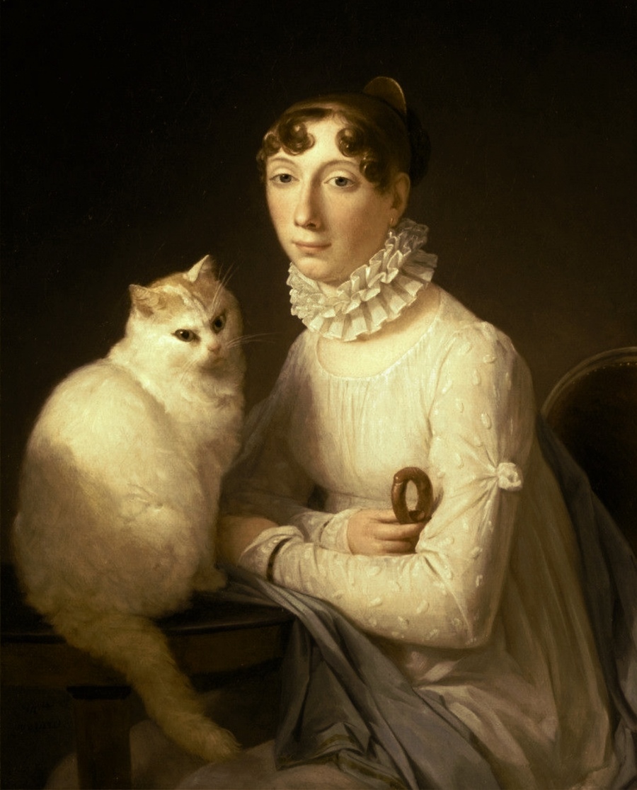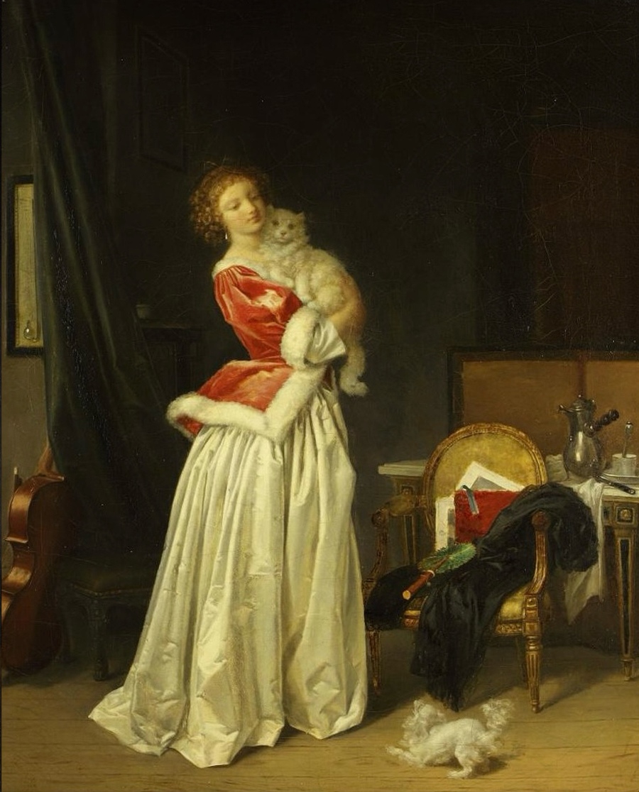 Еще одним типичным жанром является изображение женщины с кошкой. Сохранилось достаточно большое количество таких портретов у французских художников в период барокко.