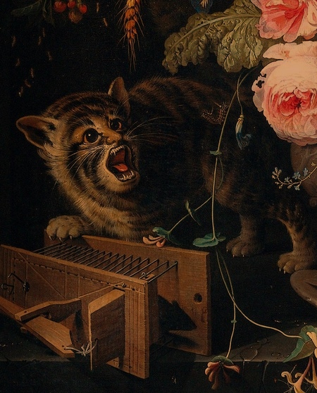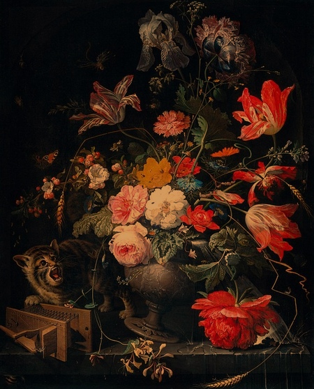 Букет с кошкой и мышеловкой / Абрахам Миньон / 1670–1675 гг.