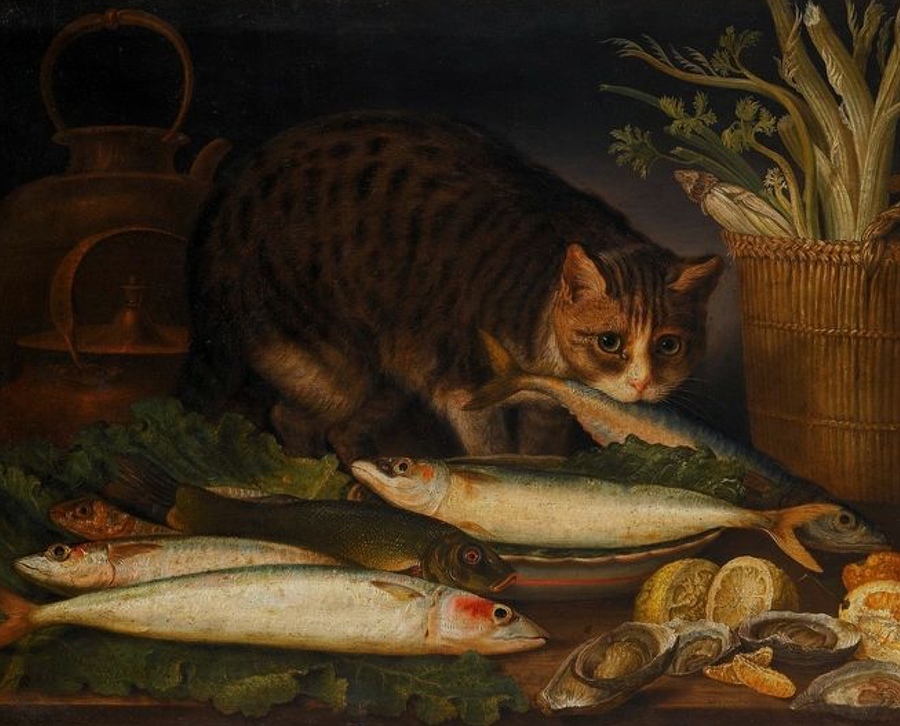 Помимо портретов и сложных сцен, художники стали отдавать свое предпочтение натюрморту. Кошка стала незаменимым участником работ с таким жанром.