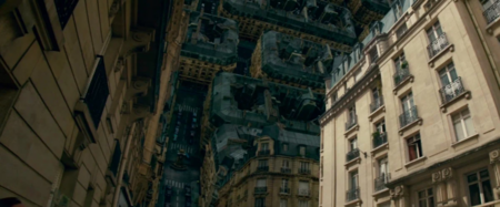 к/ф «Начало» (2010) реж. Кристофер Нолан. Пока герои идут, они видят небольшие разрушения