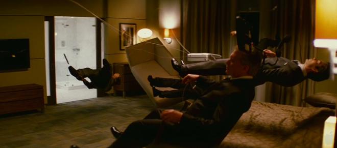 к/ф «Начало» (2010) реж. Кристофер Нолан Тряска от падения машины на первом уровне сна приводит к тому, что герои на втором оказываются в невесомости