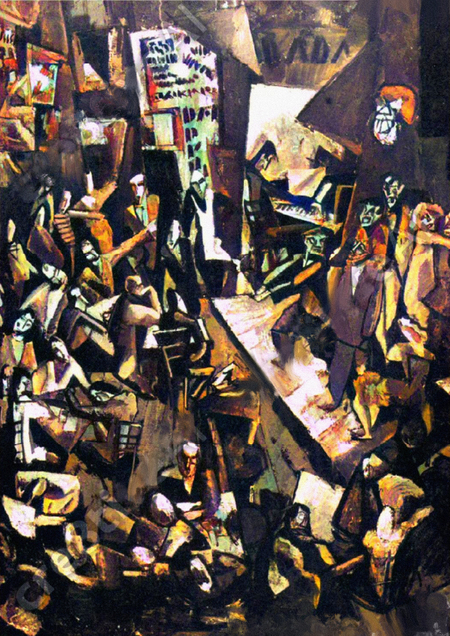 Слева направо, задний ряд: Луи Арагон, Теодор Фраенкель, Поль Элюар, Клеман Пансерс, Эммануэль Фая. Второй ряд: Поль Дерме, Филипп Супо, Жорж Рибемон-Дессайн. Первый ряд: Тристан Тцара (с моноклем), Селин Арно, Франсис Пикабиа, Андре Бретон.
