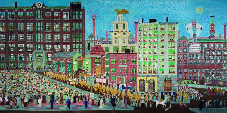 Ralph Fasanella 1 –– Dress Shop, 1972; 2 –– Lawrence 1912 —The Bread and Roses Strike, 1977; 3 –– Sunday Afternoon, 1953