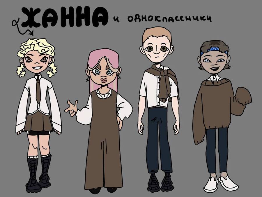 В рамках работы над комиксом я создала концепты Кеши (главного героя), Жанны (подруги Кеши), окружение и одноклассников.