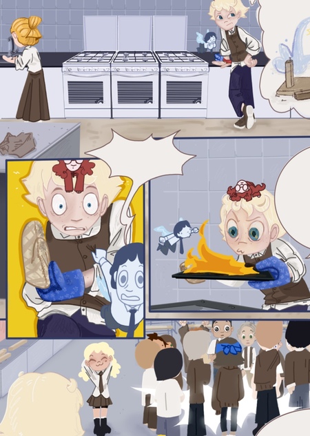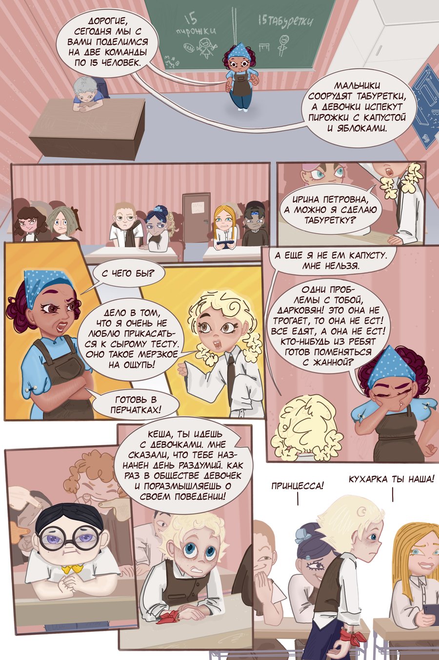 Я работала над частью истории, которая раскрывает гендерные стереотипы и отрисовала три полосы комикса.