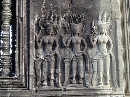 Изящные изображения небесных танцовщиц — апсар — представляют собой один из немногих декоративных элементов Ангкор-Вата, которые сохранили своё значение при переходе от индуизма к буддизму. В храме насчитывается около 1850 уникальных изображений апсар, каждая из которых обладает индивидуальными чертами и украшениями.