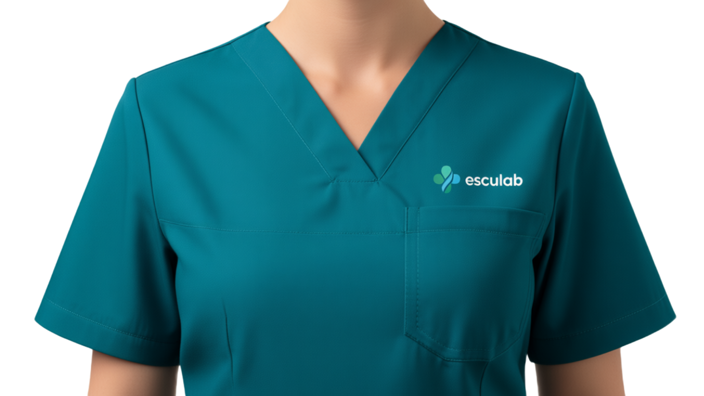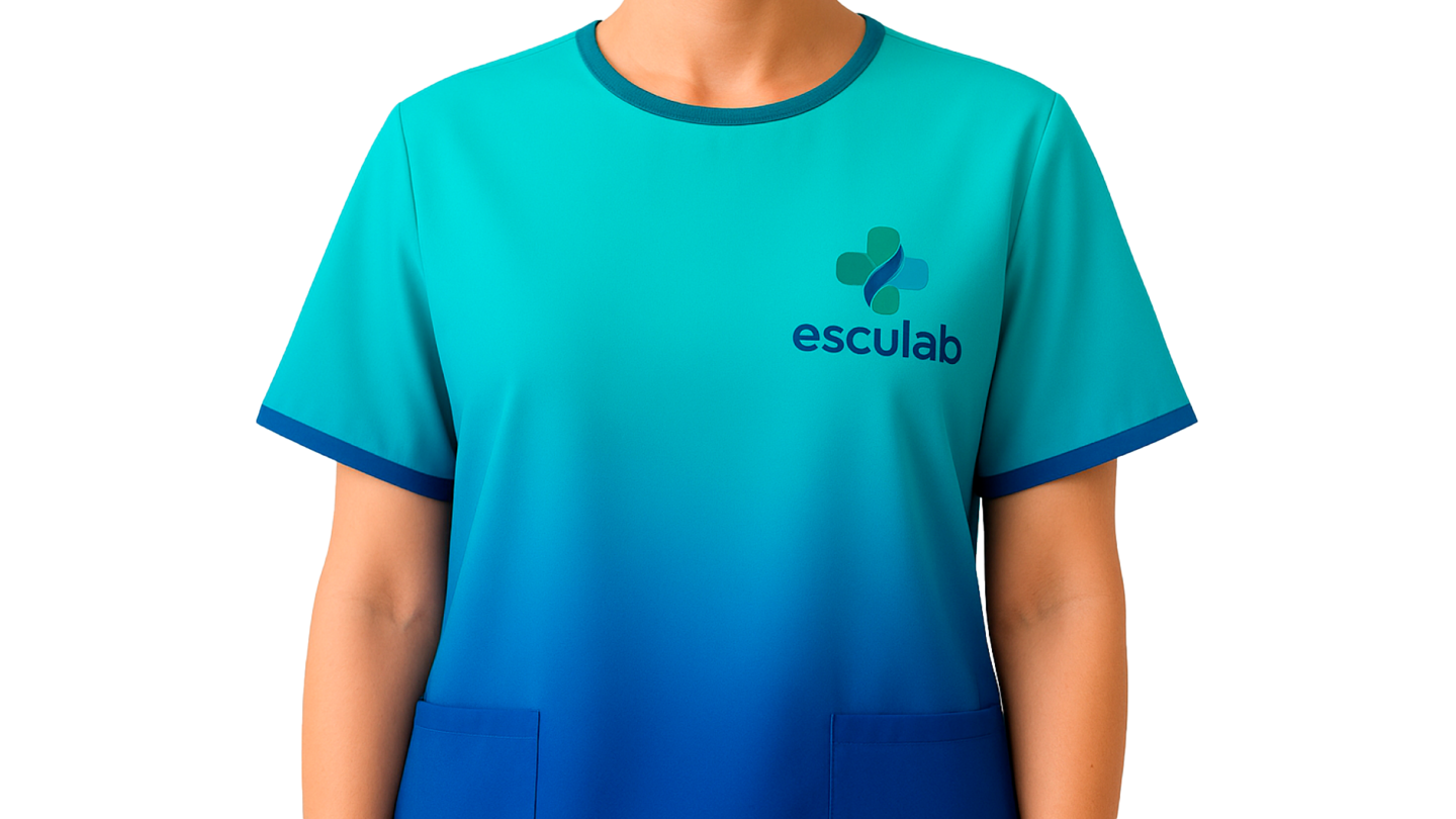 /promt (01): Create medical uniforms for the esculab clinic using the company’s colors and corporate identity. Close-up photo, face not visible, gown worn by a person. promt (02): Medical gown for patients from the esculab clinic, gradient from green to blue, esculab logo on the left side of the chest. Close-up photo, face not visible, gown worn by a person. Нейросеть: Qwen, потом редактировала в ChatGPT.