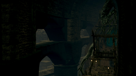 Места вроде Undead Burg или New Londo Ruins говорят визуально: здесь когда-то была жизнь, возможно даже процветание, но теперь остались только обломки. Архитектура здесь — свидетель прошлого, которое никто не помнит, и будущего, которое никогда не наступит. В Blighttown распад достигает почти органической формы: гнилые деревянные платформы, токсичная вода, покосившиеся лачуги — всё будто разлагается от влаги, времени и заброшенности.
