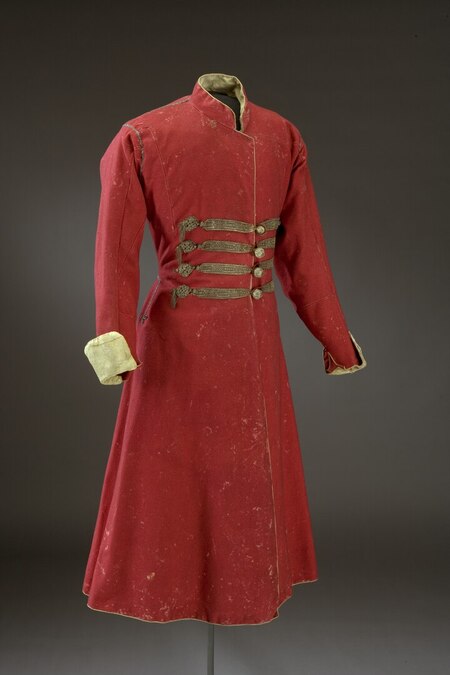 Слева: Кафтан Петра Ⅰ. 1720-е гг. Западная Европа. Сукно, золото-серебряное шитье. ГИМ Справа: Парадный костюм. По преданию, Петра Ⅱ. 1730-е гг. Россия. Узорчатый бархат, шелк, серебряная. ГЭ.