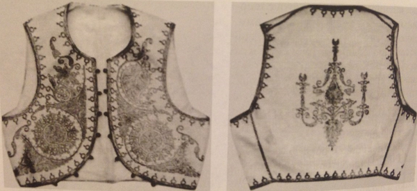 1. Жилет молодого мужчины, вышитый растительным орнаментом. Высокая Армения. XIX в. 2. Растительный орнамент на женских тканых поясах. Карин. Конец XIX в.