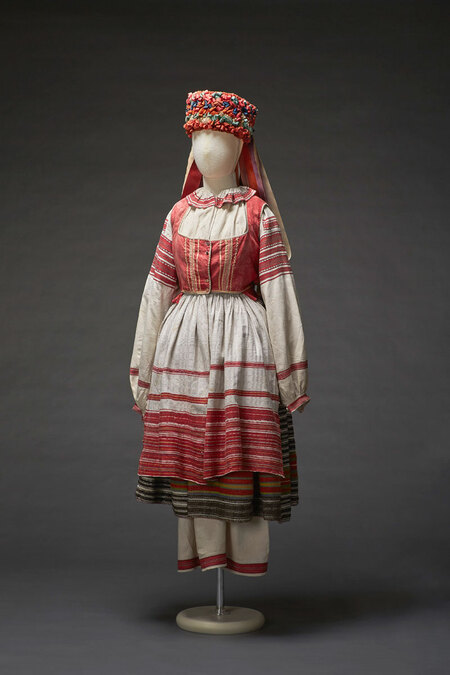 Русские традиционные костюмы на манекене. Коллекции по культуре русского народа. Российский этнографический музей.