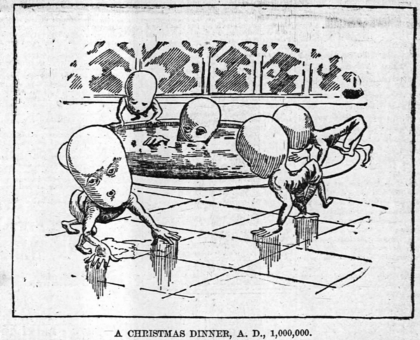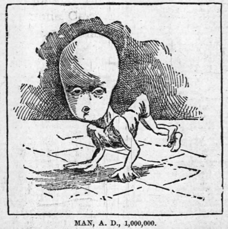 Не смотря на описанный ранее образ серых, сформировавший в массовом сознании людей определённый образ инопланетян, первым нечто подобное описал Герберт Уэллс в 1893 году. И это не был образ инопланетных существ. В своей статье «Люди из будущего: какими будут наши потомки через 1 000 000 лет», он описал будущее человечества как хилых созданий с большой головой. Такой образ был обусловлен тем, что у людей не будет физической работы, но они будут умными.