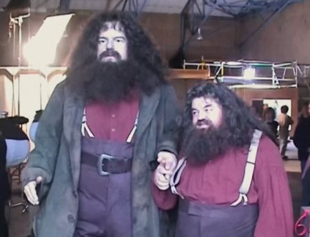 В некоторых сложных сценах актеров снимали по отдельности на зеленом фоне, а затем совмещали кадры, увеличивая Хагрида относительно других актеров.