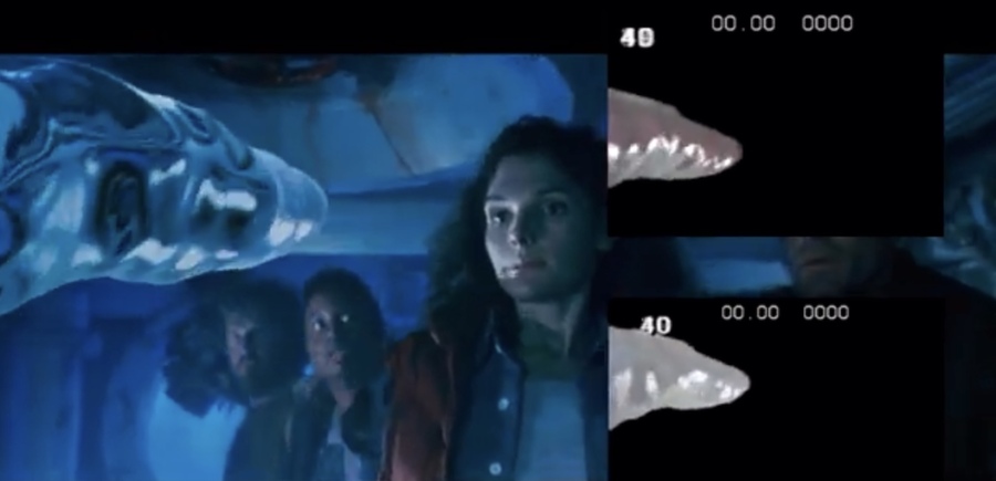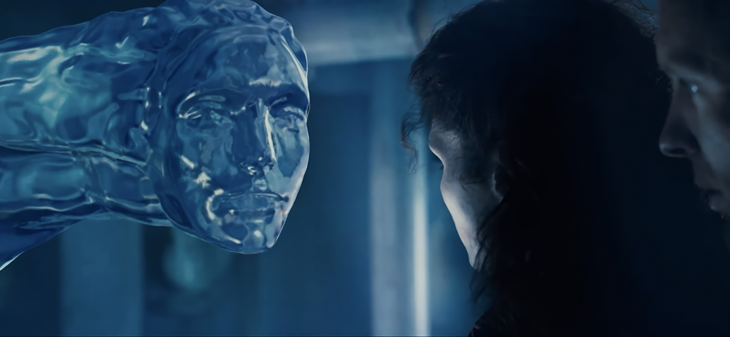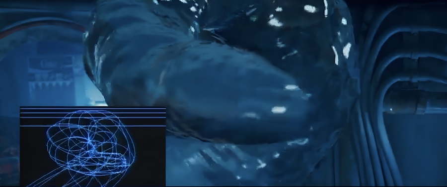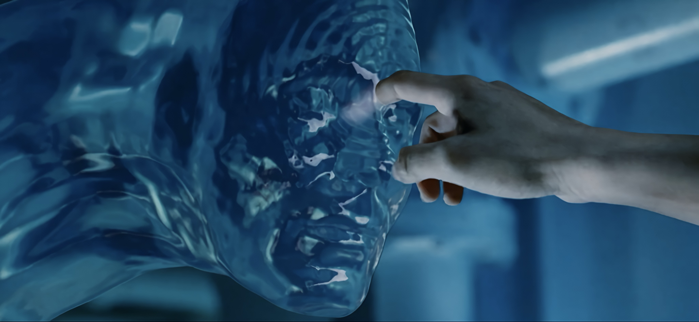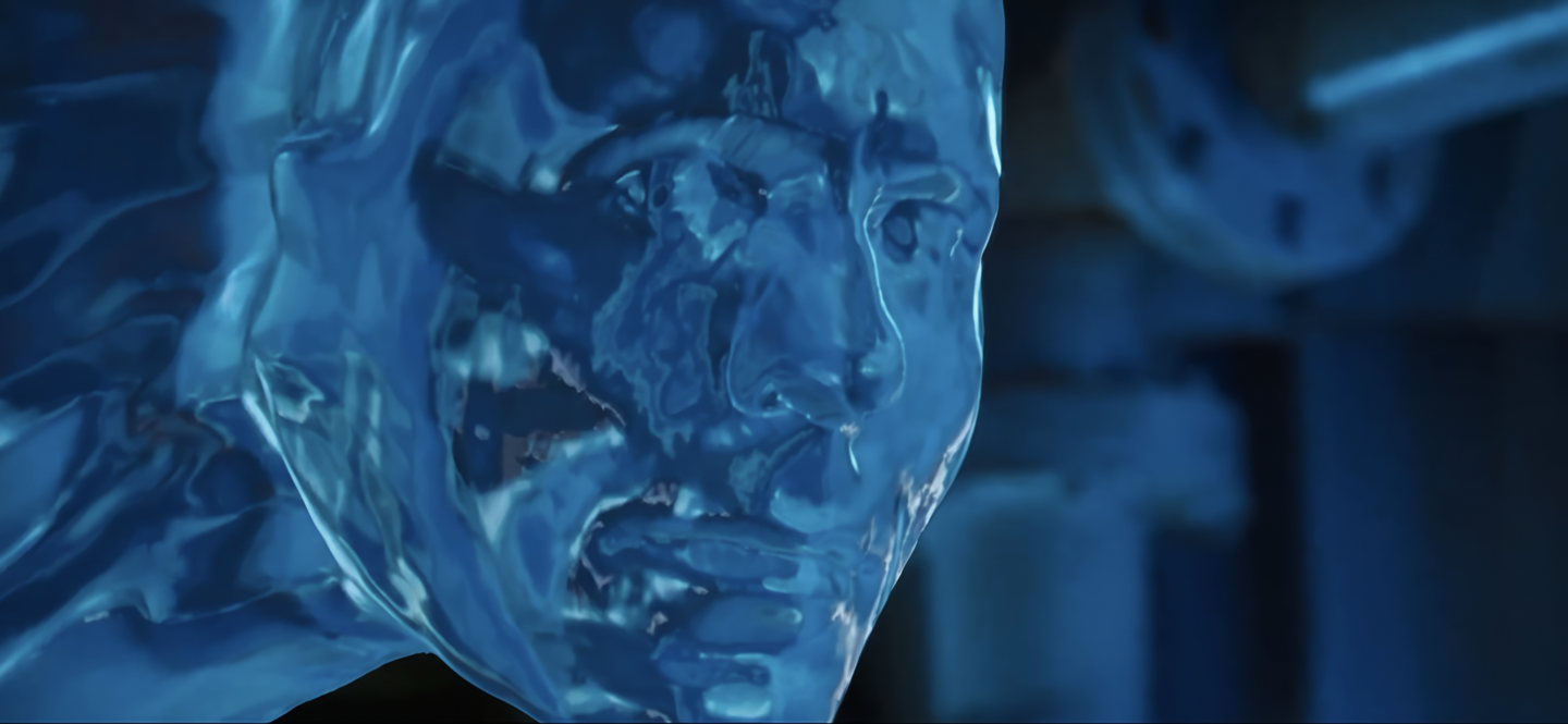- «Псевдопод» — прорыв для того времени, но графика недостаточно убедительная. - Графика и практические эффекты видны как разные слои; тем не менее, физическое присутствие актёров усиливает правдоподобие сцены с графикой. - Подтверждает идею, что практические эффекты повышают убедительность, а цифровая постобработка расширяет возможности, но ограниченная интеграция снижает правдоподобность. Технологии были развиты недостаточно.