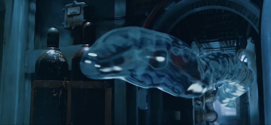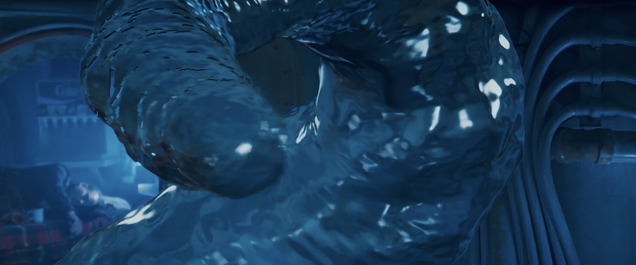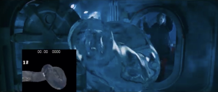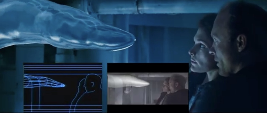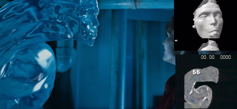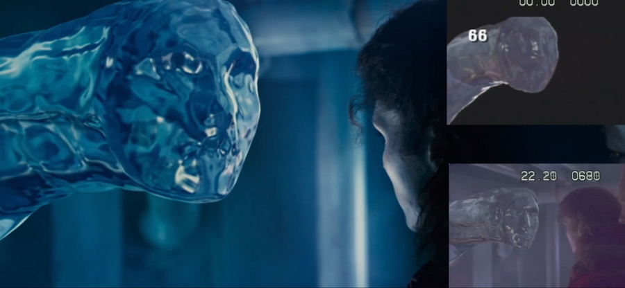 Это пример использования классических технологий: куклы, миниатюры, motion-control и рир-проекция, но вклад в развитие кино внесла сцена с псевдоподом.