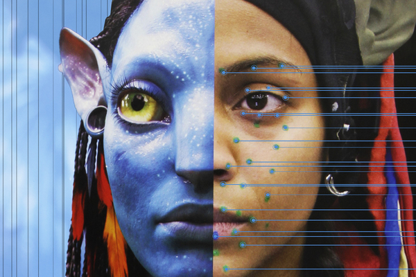 Технология facial capture, фиксировавшая изменения лица. На фото сканирование актрисы Зои Салдана.