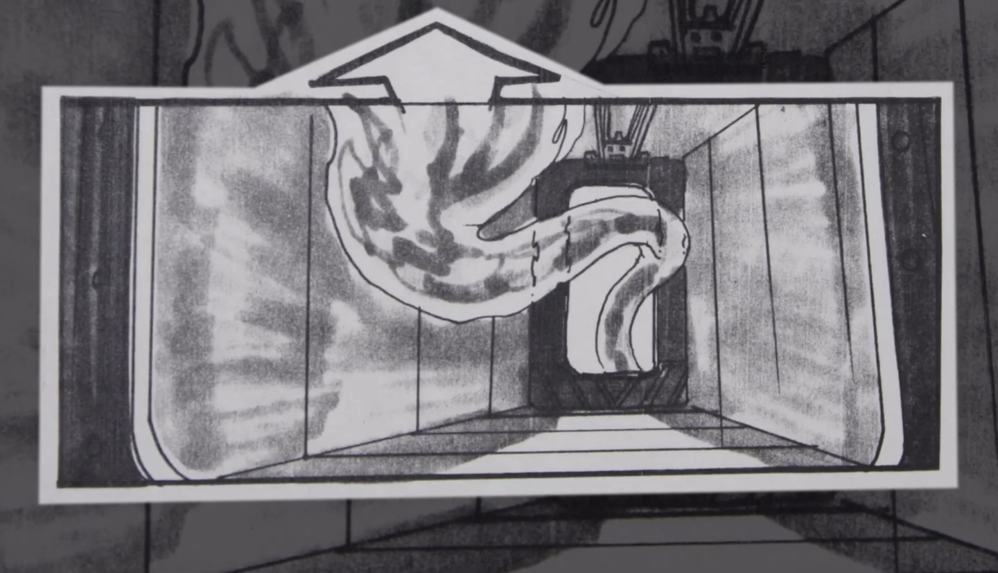 Раскадровка движения существа, на основе которой снимались сцены в фильме.