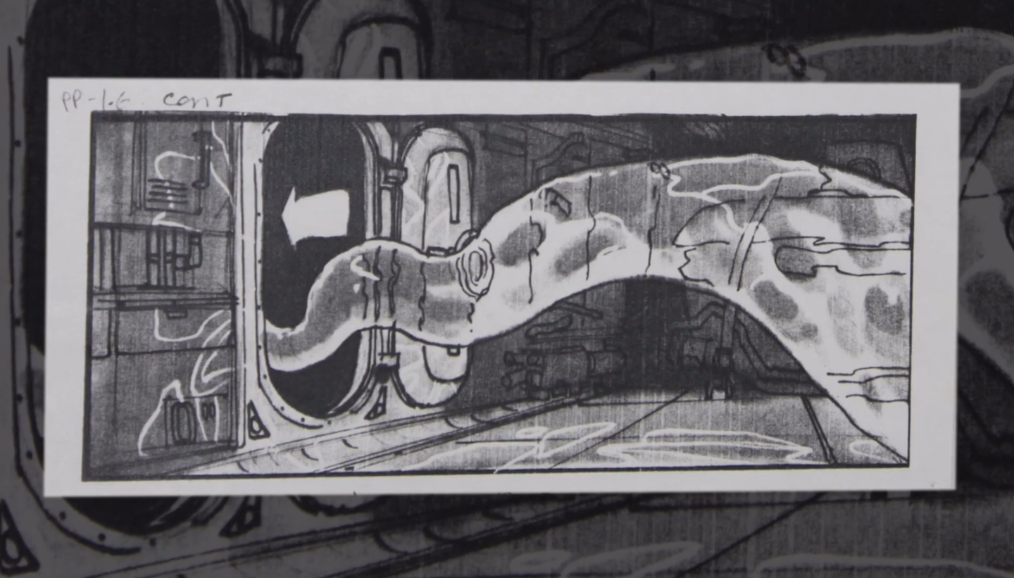 Деннис Мерен поручил художнику Джею Риддлу создать модель существа и протестировать его анимацию за день. Риддл воплотил прототип щупальца в программе Alias, после чего анимировал ее покадрово методом замены. Так, получилось несколько кадров с ключевыми позами. Это стало прототипом для инопланетного щупальца, которое в фильме уже усложнилось.
