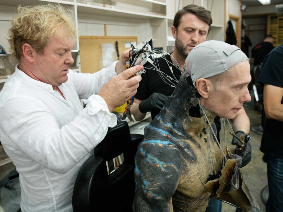 Гримирование актёра Дага Джонса, игравшего роль существа-амфибии.
