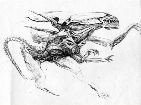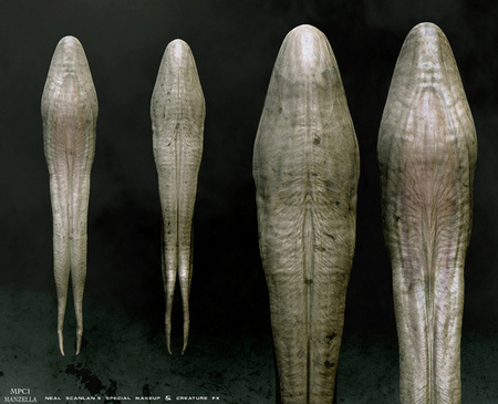 Трилобайт — одно из самых заметных существ. Базу давали практические макеты, но сцены движения выполнялись полностью в CGI. Форма существа опирается на концепты Гигера: радиальные зубы, гладкая мясистая текстура, сочные биологические детали