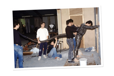 Механические головы, челюсти, лапы и хвост с пневматикой и тросами обеспечивали движения мелких деталей, создавая иллюзию живого существа