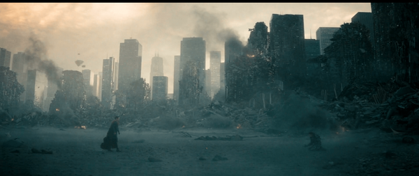 Кадр разрушения города в фильме «Человек из стали» (2013)