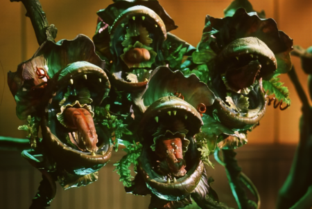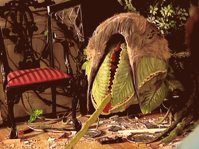 Фильм «Магазинчик ужасов» (1986) представляет собой пример использования практических спецэффектов для создания «живого» растения в полнометражном кино. Поскольку цифровые технологии в это время ещё не существовали в привычном современном виде, все визуальные задачи, связанные с движением и органикой плотоядного растения Одри II, были решены исключительно механическими, аниматронными и кукловодческими средствами.